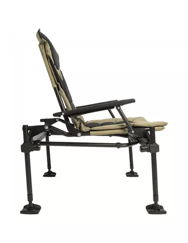 De Korum X25Accessory Chair is opnieuw ontworpen zodat deze nu een lager gewicht heeft, compacter is en eenvoudiger te gebruiken. De stoel beschikt nog steeds over ons gepatenteerd verticaal potenontwerp, waarbij er gebruik gemaakt wordt van 25 mm ronde poten vanwege de extra stabiliteit. Het matras is vervaardigd van de hoogste kwaliteit aan duurzame materialen en ons nieuwe Quick Fold ontwerp betekent dat je al snel, binnen enkele minuten aan het vissen bent. De stoel beschikt ook over armleuningen met gevoerd neopreen, een must voor het comfort op de oever.